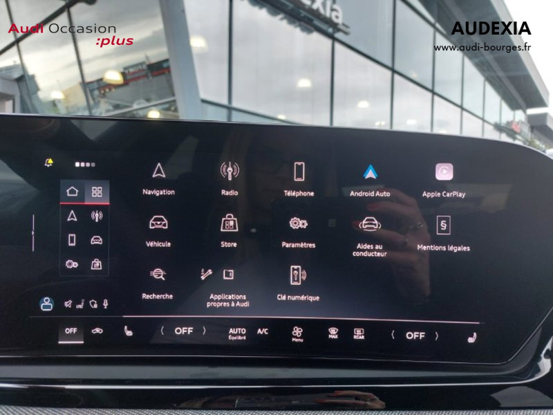 Pack Tech – Caméra de recul – Régulateur de vitesse adaptatif – Park assist plus – Système d'aide au stationnement plus – Projecteurs à LED plus – Assistant feux de route – Bloc de feux AR à LED pro – Climatisation automatique 3 zones – Rétroviseur intérieur à réglage jour/nuit automatique – Rétroviseurs ext. réglables – Projection de logo sur le sol depuis les rétroviseurs extérieurs – Audi sound system – Audi Application Store et smartphone interface