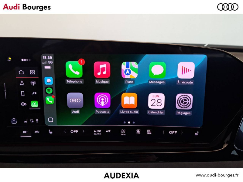 Pack Tech – Caméra de recul – Régulateur de vitesse adaptatif – Park assist plus – Système d'aide au stationnement plus – Projecteurs à LED plus – Assistant feux de route – Bloc de feux AR à LED pro – Climatisation automatique 3 zones – Rétroviseur intérieur à réglage jour/nuit automatique – Rétroviseurs ext. réglables – Projection de logo sur le sol depuis les rétroviseurs extérieurs – Audi sound system – Audi Application Store et smartphone interface