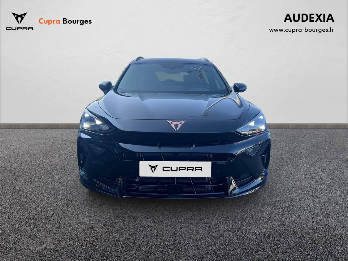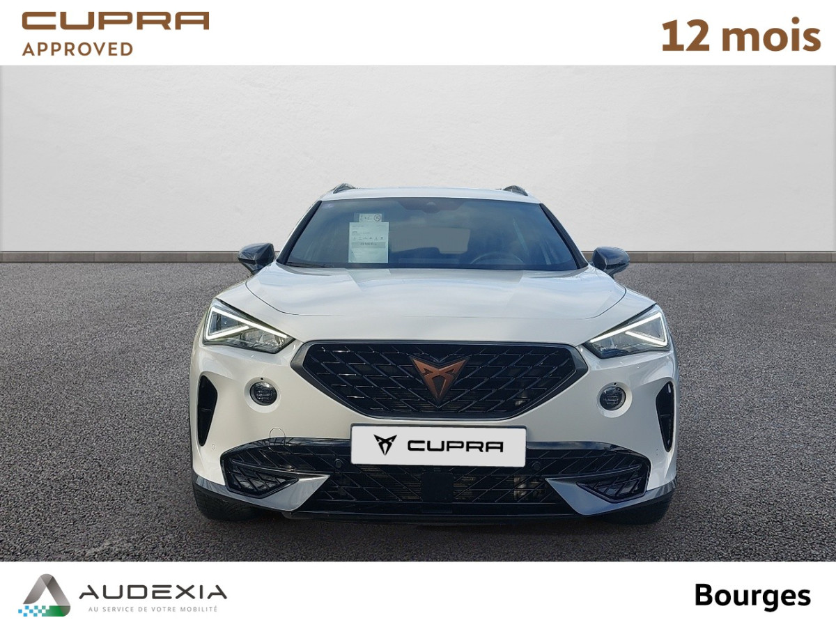 Design intérieur Progressive – Sièges baquets cuir Gris Lunaire avec surpiqûres cuivrées – Logos CUPRA embossés sur les appuie-têtes – Planche de bord Gris Lunaire surpiquée avec inserts Dark Alu – Contre-portes en TEP noir surpiqués – Sièges conducteur et passager chauffants avec réglage électrique à mémoire, y compris réglage lombaire